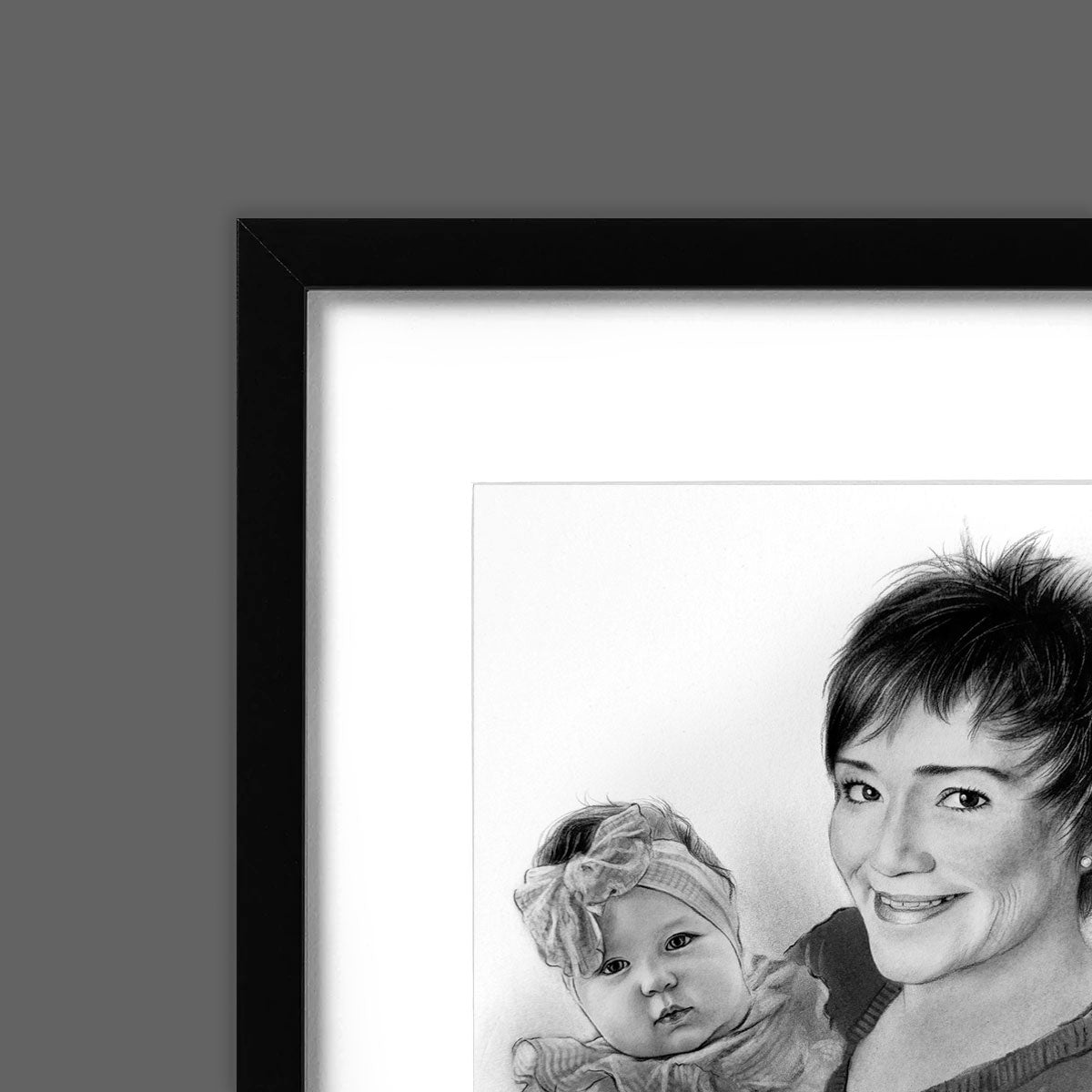 Simply add the frame as an extra after placing your portrait in the cart. We provide careful framing and secure packaging to ensure your portrait looks its best.